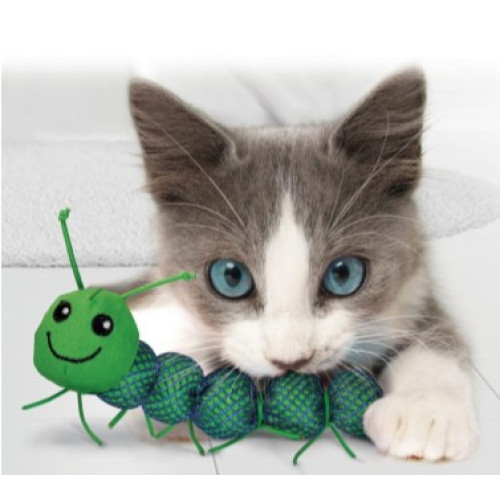 caterpillar cat toy from Kong has an easy-grip mesh fabric and a Premium Catnip